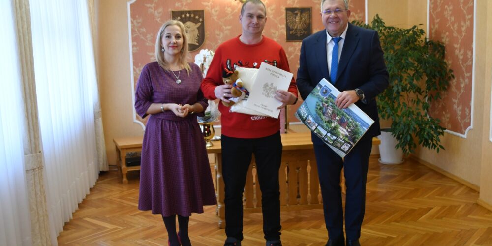 Szczęśliwemu tacie w czwartek pogratulował burmistrz Kartuz Mieczysław Grzegorz Gołuński ze swoją zastępczynią Sylwią Biankowską. Mateusz jest czwartym dzieckiem Iwony i Krzysztofa Okrojów z Sianowskiej Huty. Ma trzech braci – Mikołaja, Macieja i Michała. W chwili narodzin ważył 3450 gramów i mierzył 55 cm.