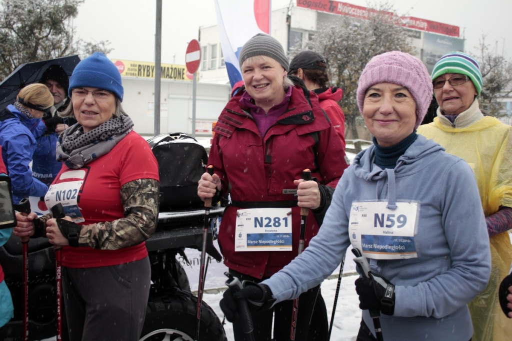 Marsz Niepodległości w Gdyni, który poprzedził doroczny Bieg Niepodległości, odbył się w piątkowe przedpołudnie. Aura nie sprzyjała zawodnikom. Padał śnieg, było ślisko. A jednak zawody nordic walking zgromadziły na starcie ponad 280 sportowców.