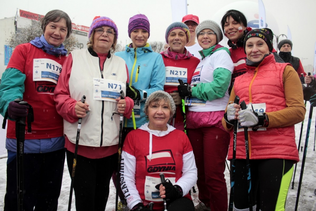 Marsz Niepodległości w Gdyni, który poprzedził doroczny Bieg Niepodległości, odbył się w piątkowe przedpołudnie. Aura nie sprzyjała zawodnikom. Padał śnieg, było ślisko. A jednak zawody nordic walking zgromadziły na starcie ponad 280 sportowców.