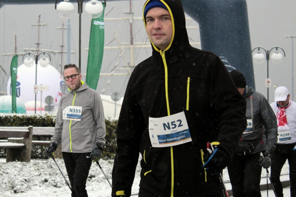 Marsz Niepodległości w Gdyni, który poprzedził doroczny Bieg Niepodległości, odbył się w piątkowe przedpołudnie. Aura nie sprzyjała zawodnikom. Padał śnieg, było ślisko. A jednak zawody nordic walking zgromadziły na starcie ponad 280 sportowców.