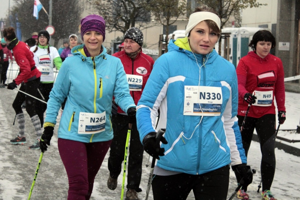 Marsz Niepodległości w Gdyni: nordic walking w śniegu [ZDJĘCIA]