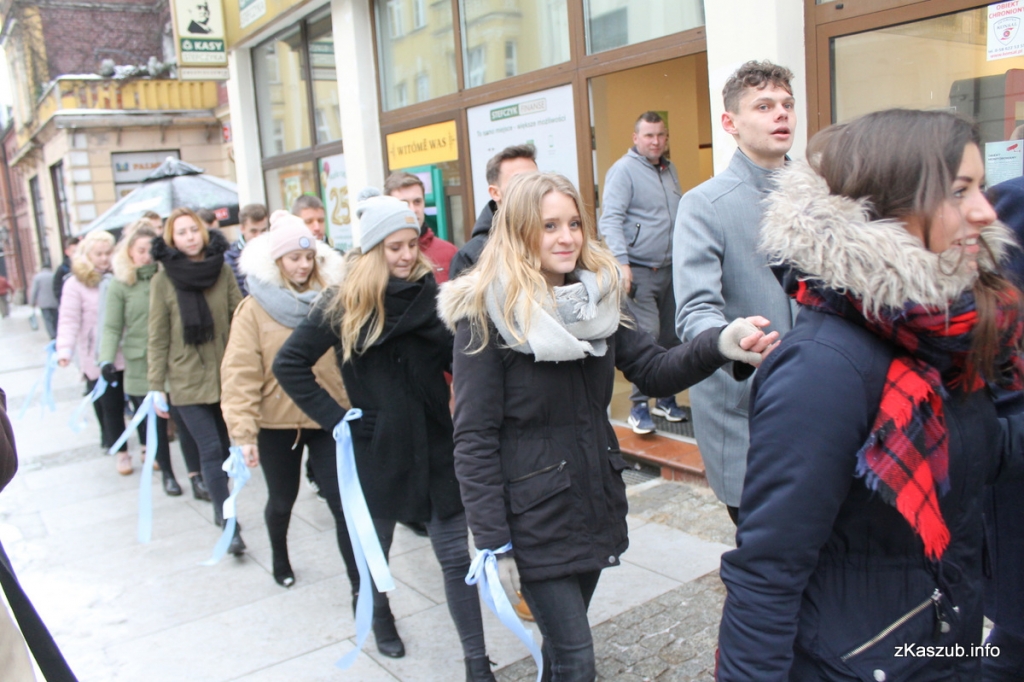 Na kartuskim rynku mogliśmy dziś zobaczyć uczniów ze szkół: Liceum Ogólnokształcącego w Kartuzach, Zespołu Szkół Ogólnokształcących w Kartuzach, Zespołu Szkół Technicznych w Kartuzach, Zespołu Szkół Zawodowych i Ogólnokształcących w Kartuzach, Zespołu Szkół Ponadgimnazjalnych w Przodkowie, Zespołu Szkół Ponadgimnazjalnych w Sierakowicach, Zespołu Szkół Ponadgimnazjalnych w Somoninie oraz Zespołu Szkół Zawodowych i Ogólnokształcących w Żukowie. W pierwszych parach pojawili się również przedstawiciele władz samorządowych: Starosta Bogdan Łapa, wicestarosta Piotr Fikus, członkowie Zarządu Powiatu, burmistrz Kartuz Mieczysław Grzegorz Gołuński wraz z wiceburmistrz Sylwią Biankowską.