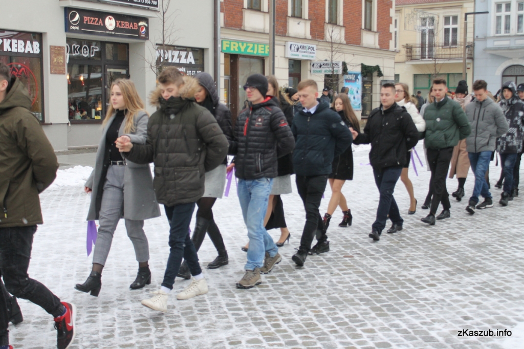 Na kartuskim rynku mogliśmy dziś zobaczyć uczniów ze szkół: Liceum Ogólnokształcącego w Kartuzach, Zespołu Szkół Ogólnokształcących w Kartuzach, Zespołu Szkół Technicznych w Kartuzach, Zespołu Szkół Zawodowych i Ogólnokształcących w Kartuzach, Zespołu Szkół Ponadgimnazjalnych w Przodkowie, Zespołu Szkół Ponadgimnazjalnych w Sierakowicach, Zespołu Szkół Ponadgimnazjalnych w Somoninie oraz Zespołu Szkół Zawodowych i Ogólnokształcących w Żukowie. W pierwszych parach pojawili się również przedstawiciele władz samorządowych: Starosta Bogdan Łapa, wicestarosta Piotr Fikus, członkowie Zarządu Powiatu, burmistrz Kartuz Mieczysław Grzegorz Gołuński wraz z wiceburmistrz Sylwią Biankowską.