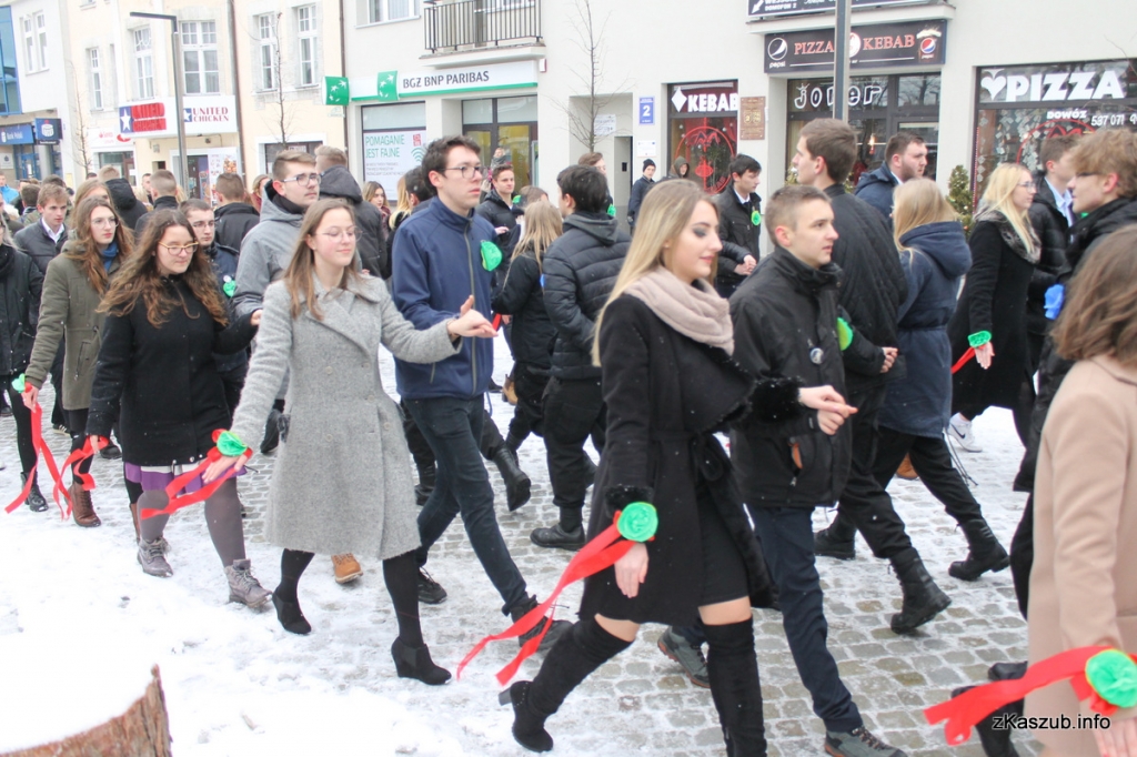 Na kartuskim rynku mogliśmy dziś zobaczyć uczniów ze szkół: Liceum Ogólnokształcącego w Kartuzach, Zespołu Szkół Ogólnokształcących w Kartuzach, Zespołu Szkół Technicznych w Kartuzach, Zespołu Szkół Zawodowych i Ogólnokształcących w Kartuzach, Zespołu Szkół Ponadgimnazjalnych w Przodkowie, Zespołu Szkół Ponadgimnazjalnych w Sierakowicach, Zespołu Szkół Ponadgimnazjalnych w Somoninie oraz Zespołu Szkół Zawodowych i Ogólnokształcących w Żukowie. W pierwszych parach pojawili się również przedstawiciele władz samorządowych: Starosta Bogdan Łapa, wicestarosta Piotr Fikus, członkowie Zarządu Powiatu, burmistrz Kartuz Mieczysław Grzegorz Gołuński wraz z wiceburmistrz Sylwią Biankowską.