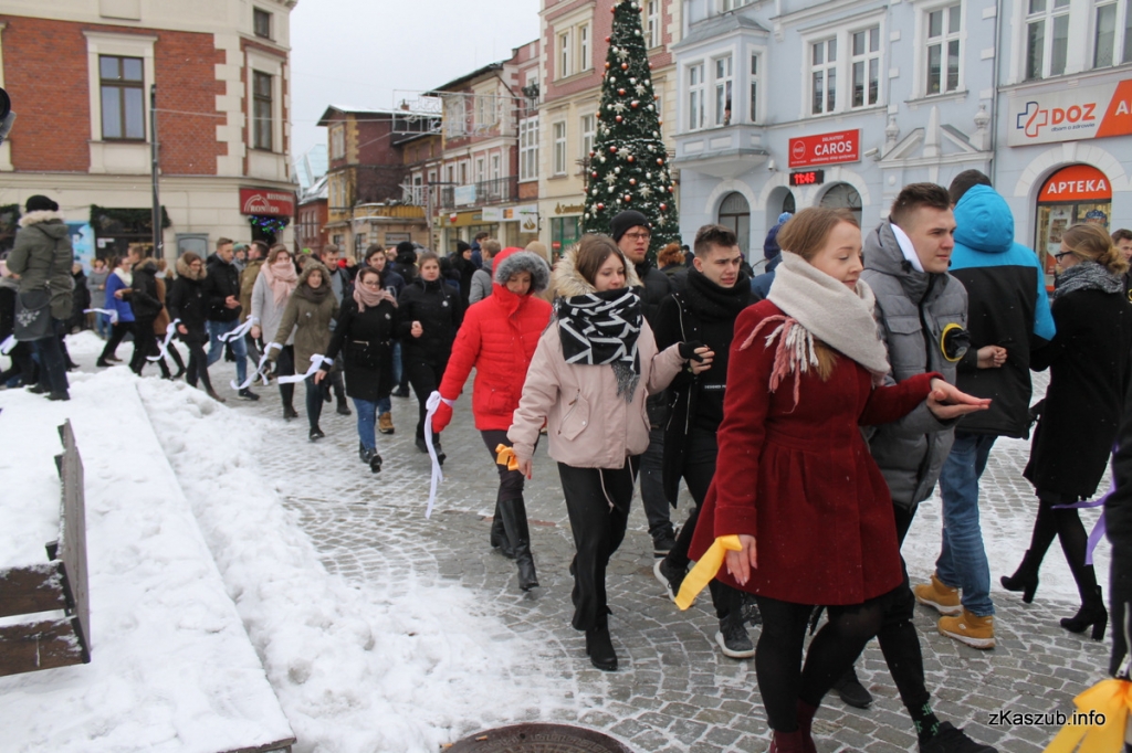 Na kartuskim rynku mogliśmy dziś zobaczyć uczniów ze szkół: Liceum Ogólnokształcącego w Kartuzach, Zespołu Szkół Ogólnokształcących w Kartuzach, Zespołu Szkół Technicznych w Kartuzach, Zespołu Szkół Zawodowych i Ogólnokształcących w Kartuzach, Zespołu Szkół Ponadgimnazjalnych w Przodkowie, Zespołu Szkół Ponadgimnazjalnych w Sierakowicach, Zespołu Szkół Ponadgimnazjalnych w Somoninie oraz Zespołu Szkół Zawodowych i Ogólnokształcących w Żukowie. W pierwszych parach pojawili się również przedstawiciele władz samorządowych: Starosta Bogdan Łapa, wicestarosta Piotr Fikus, członkowie Zarządu Powiatu, burmistrz Kartuz Mieczysław Grzegorz Gołuński wraz z wiceburmistrz Sylwią Biankowską.