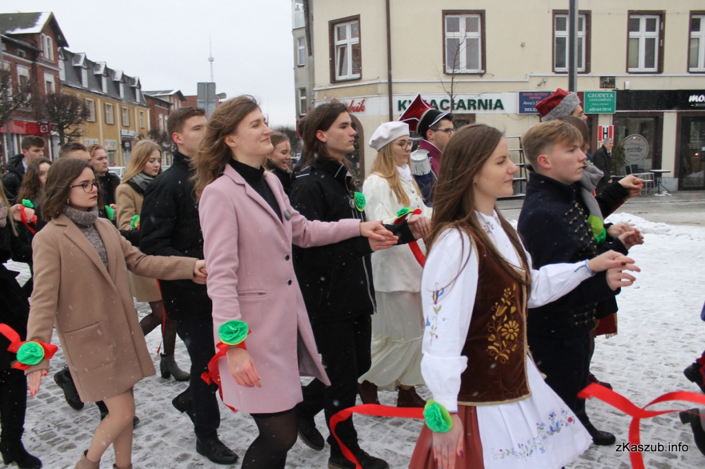 Na kartuskim rynku mogliśmy dziś zobaczyć uczniów ze szkół: Liceum Ogólnokształcącego w Kartuzach, Zespołu Szkół Ogólnokształcących w Kartuzach, Zespołu Szkół Technicznych w Kartuzach, Zespołu Szkół Zawodowych i Ogólnokształcących w Kartuzach, Zespołu Szkół Ponadgimnazjalnych w Przodkowie, Zespołu Szkół Ponadgimnazjalnych w Sierakowicach, Zespołu Szkół Ponadgimnazjalnych w Somoninie oraz Zespołu Szkół Zawodowych i Ogólnokształcących w Żukowie. W pierwszych parach pojawili się również przedstawiciele władz samorządowych: Starosta Bogdan Łapa, wicestarosta Piotr Fikus, członkowie Zarządu Powiatu, burmistrz Kartuz Mieczysław Grzegorz Gołuński wraz z wiceburmistrz Sylwią Biankowską.