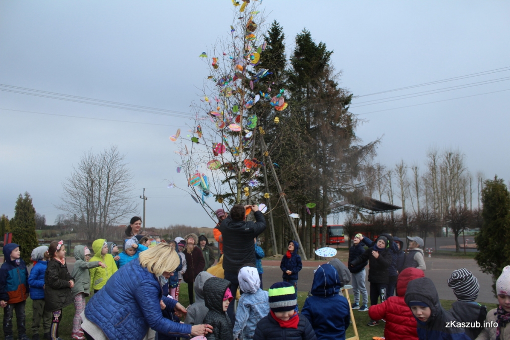 Dziś, mimo niesprzyjającej pogody, przodkowskie dzieci kontynuowały tę tradycję. Przy Szkole Podstawowej w Przodkowie stanęło ozdobione wielkanocne drzewko.