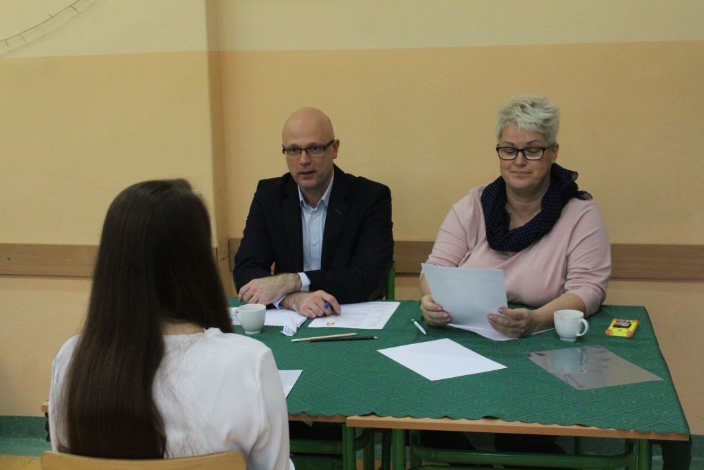Już po raz ósmy, uczniowie szkół ponadgimnazjalnych z terenu powiatu kartuskiego przeszli rozmowę kwalifikacyjną z komisją złożoną z przedstawicieli firm, doskonałych praktyków oraz specjalistów z zakresu rekrutacji i selekcji. Rozmowę przeprowadzali: Agata Kucharska – dyrektor Biura Karier Wyższej Szkoły Bankowej w Gdańsku oraz Leszek Wiśniewski – przedstawiciel firmy Kramer S.A. Wszystko to w ramach Powiatowego Konkursu „Autoprezentacja”.