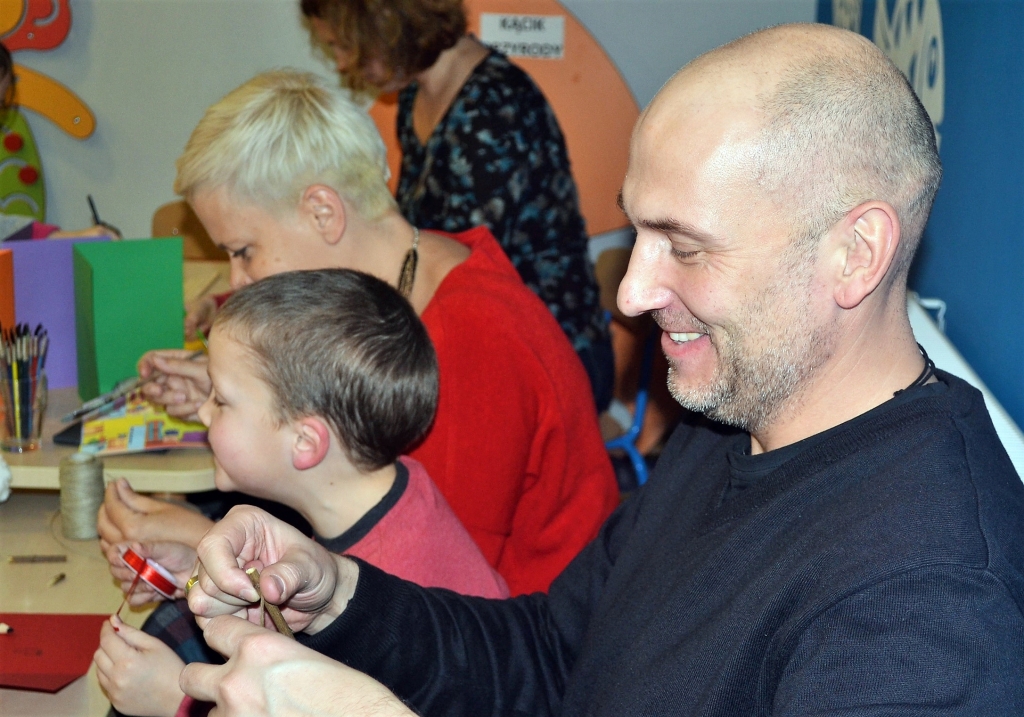 Rodzice z dziećmi przygotowali świąteczne ozdoby i kartki. Do wyboru mieli całe mnóstwo kolorowych kartek, farb i różnych dodatków, więc każda ozdoba była wyjątkowa. Wychowawczynie grupy „Rybek” – Sandra Zoch i Monika Plichta zadbały o to, żeby nikomu niczego nie zabrakło.