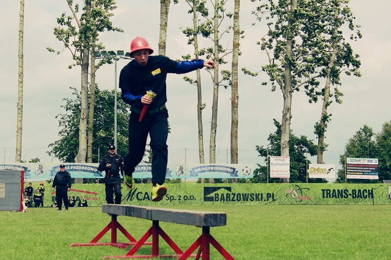 Zawody strażackie w Przodkowie rozpoczęły się o godz. 14 sztafetą, w której wystartowały zarówno drużyny czynne jak i młodzieżowe. Młodsi i starsi ochotnicy musieli wykazać się ogólną sprawnością fizyczną, biegnąc po równoważni, przeskakując dwumetrowy rów, poruszając się slalomem między tyczkami, czy przeskakując ściankę. Po zakończeniu sztafety ten sam tor przeszkód pokonali zawodnicy indywidualni.
