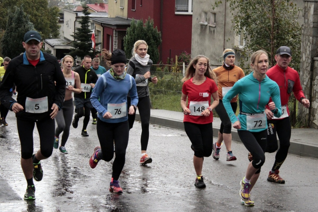 Zawodnikom nie sprzyjała aura. Musieli biec ostrożnie. Po deszczu w lesie zrobiło się bardzo ślisko. O tym, że łatwo nie będzie biegacze mogli się przekonać już na starcie. Po wystartowaniu bowiem musieli pobiec pod górę ul. Jarą. Wielu z zawodników stromy podbieg pokonało idąć.